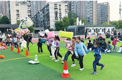 粮道街中学举行的“枕头大战”活动,小学段和初中段学生都参与其中。
