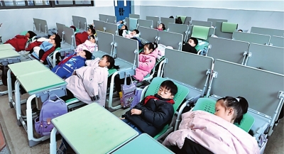 新河街学校为每个学生配备了可以躺着午休的课桌椅。
