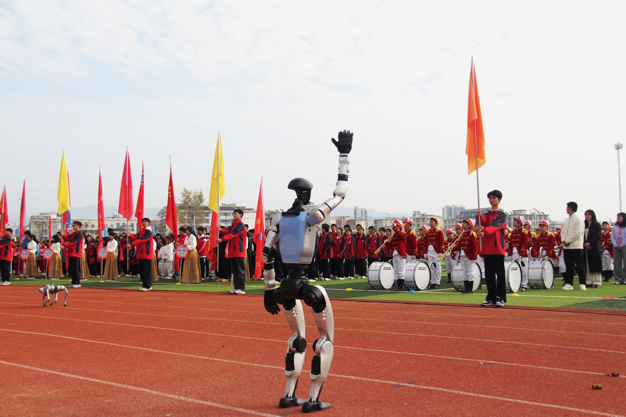 在开幕式上,数台智能机器人化身“特殊运动员”,精准复刻短跑起跑、跳远腾空、铅球投掷等田径运动姿态,灵活的机械关节随着音乐节奏摆动,清晰展现运动发力轨迹,用科技视角解构体育之美。