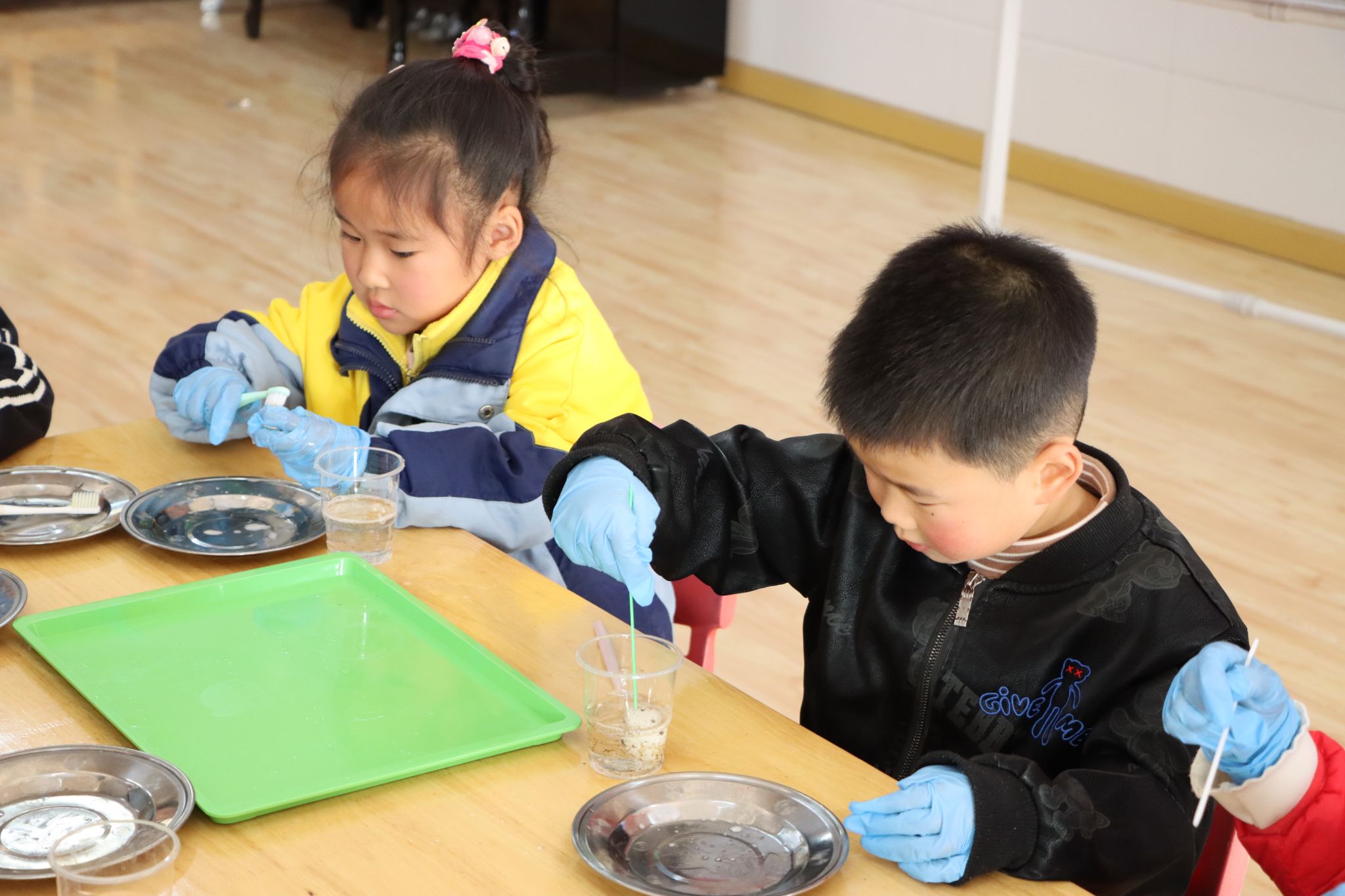 在《谁是嫌疑人》《我是声音侦探》等“案件侦破”类课堂中,孩子们通过观察、猜想、推理与验证,逐步解锁科学思维;《水变清了》《让硬币浮起来》《有趣的风》等实践课程,鼓励幼儿动手操作、勇于尝试,在惊喜与欢笑中萌发探索兴趣;《鹌鹑蛋变美记》《神奇的魔法冰》等创意课堂,则让孩子们在直观体验中感受科学的奇妙与魅力。孩子们眼中闪烁的好奇光芒、情不自禁的欢呼惊叹,成为科学教育最动人的注脚。
