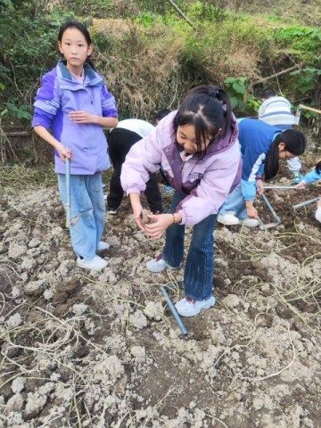 孩子们挖红薯,从最开始拿锄头“不得要领”,到后来能准确判断红薯的位置,小心挖出完好的红薯,孩子们的动作越来越熟练。一个下午的时间,每个孩子的小竹篮里都装着大小不一的红薯,脸上的泥土和笑容混在一起,形成最生动的“劳动勋章”。