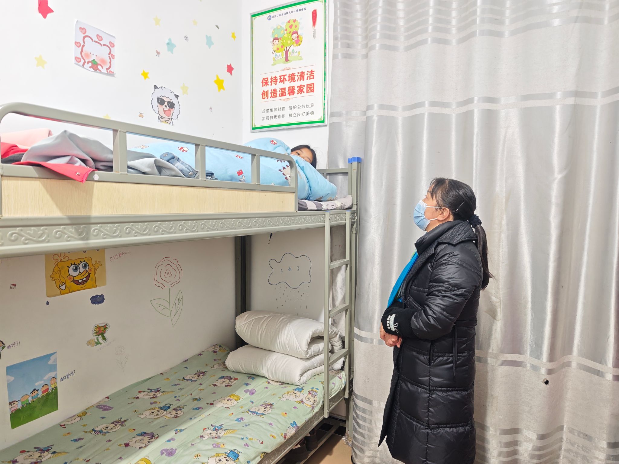 夜幕降临,宿舍楼道里的脚步声格外轻柔。校长一行逐间走访宿舍,没有过多寒暄,首先俯身查看同学们的被褥厚度,伸手触摸被褥蓬松度,细致询问“晚上睡觉冷不冷?”“被子够不够厚?”“褥子是不是有点薄?”等实际问题。遇到被褥较薄的学生,校长当场叮嘱班主任做好登记,联系家长及时送厚被褥,避免学生着凉感冒。
