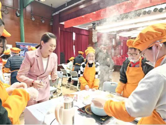 堂课上,学生身着围裙、头戴厨师帽,在老师的指导下分工协作,从认识食材到亲手熬制,全过程沉浸式体验土家饮食文化,充满了生活气息与温度。老师不仅教会了学生实用的烹饪技能,还通过“舌尖上的家乡味”激发了学生对土家文化的认同与热爱,让学生感受土家文化的独特魅力,让劳动成为愉悦的文化实践。