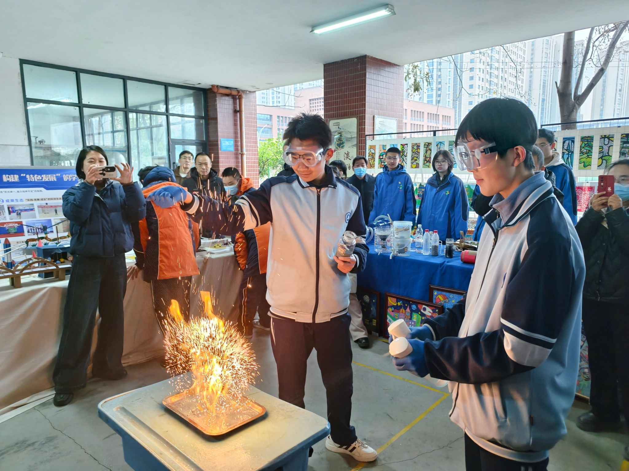 位于世范楼架空层的“北中学科静态展区”,是学校常态化科技教育的生动缩影。物理学科的“看见声音”模型将声波转化为可视图像;化学组的“蓝瓶子实验”以颜色变幻揭示氧化还原反应的奥秘;生物组的生态瓶与细胞模型勾勒出生命的微观图景;地理组的立体地形图则让山川河流跃然眼前。每件展品旁都配有学生讲解员,他们从容自信地阐述原理、分享创作心得,真正体现了“学以致用、知行合一”。