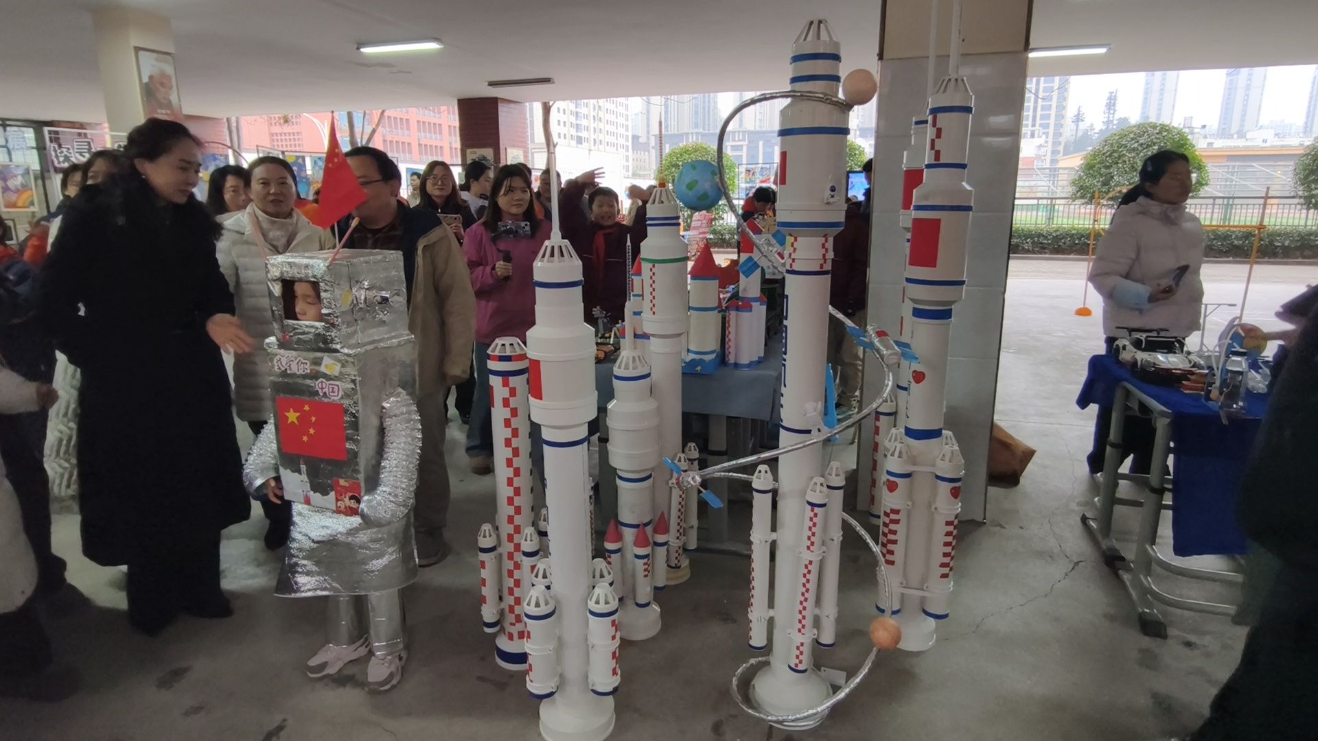 此次展出的作品绝大多数源自学校“课程+社团+活动”三轮驱动的科技教育体系。无论是科幻小说视频、隔音房间模型,还是机械臂互动体验、无人机竞速赛事,都是日常课堂教学、项目式学习与社团活动的自然延伸。展板上每一段“设计思路”、每一句“原理简述”,都记录着学生从发现问题到动手解决的真实历程,生动诠释了学校“以科创赋能成长”的教育理念。