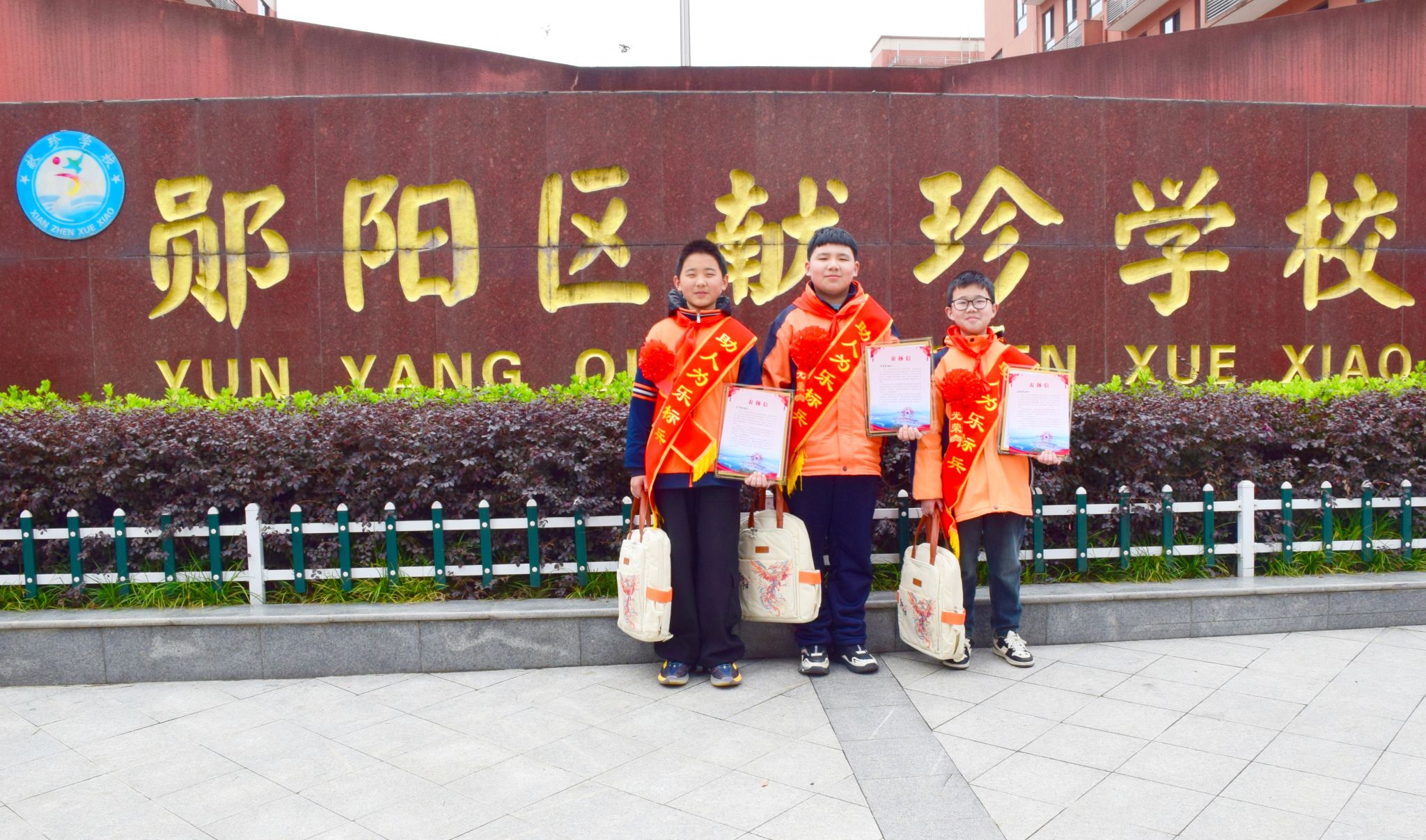 当天上午,郧阳区委宣传部、郧阳区精神文明建设办公室、郧阳区教育局的领导也专程来到献珍学校,为三位同学赠送“文明之星”纪念牌,并为三位学生和学校颁发了表扬信,以肯定他们助人为乐的高尚行为,肯定学校高质量的德育工作。