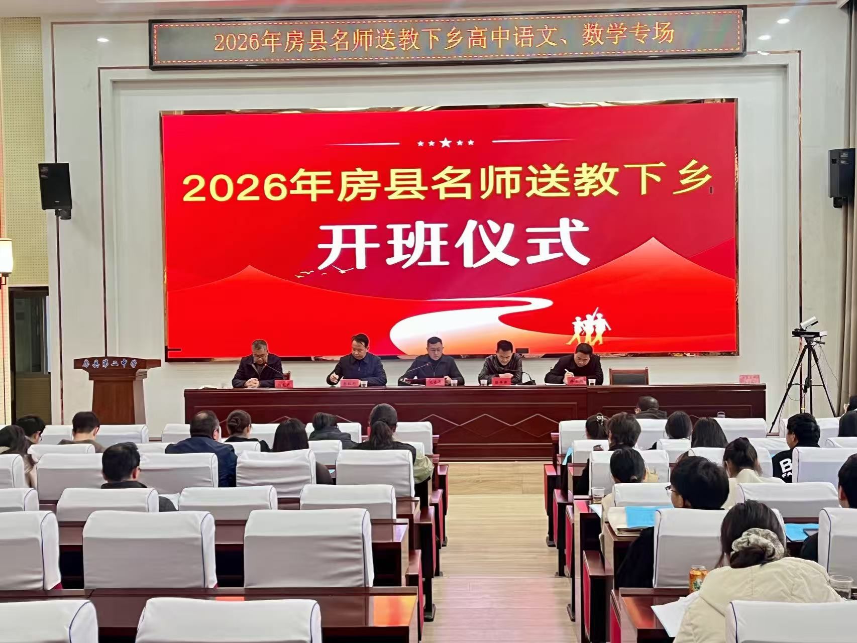 为深入推进教育优质均衡发展,充分发挥名师示范引领与辐射带动作用,推动优质教育资源下沉共享,全面提升全县高中教育教学质量与育人水平,3 月 25 日,2026 年房县名师送教下乡活动高中语文、数学专场在房县二中隆重举行。来自房县一中、房县二中的百余名高中语文、数学教师齐聚校园,共赴教研盛宴、共探育人良方,以深度教研赋能高中教育高质量发展。