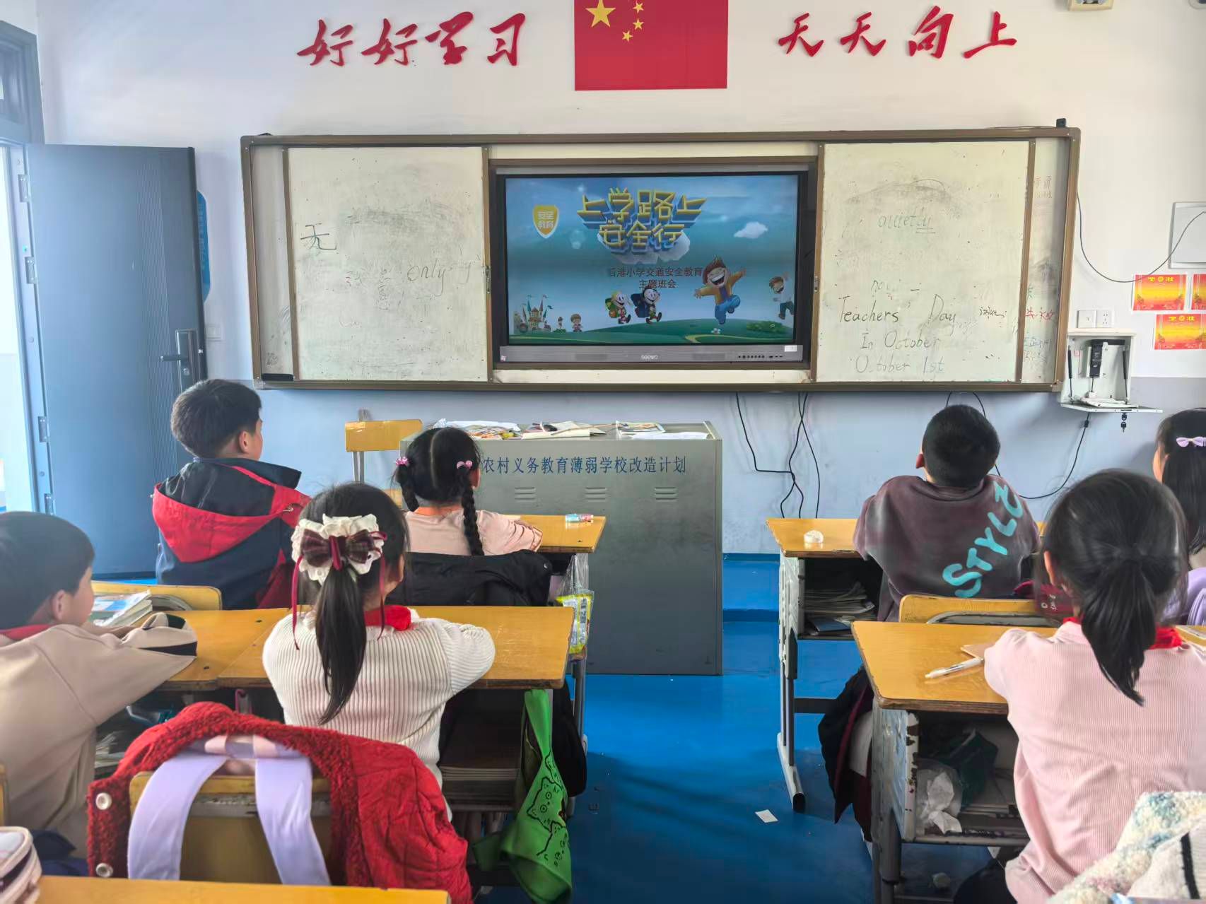 周一,班队会课上,各班级结合班情,打造“沉浸式”安全教育课堂。有的班级播放火灾逃生、防溺水、交通事故应急等专题视频,以直观画面拆解危险场景,教授自救互救技巧;有的班级开展安全知识竞赛,通过必答、抢答、情景问答等形式,让学生在互动中巩固交通、消防、饮食等安全常识;还有的班级组织参观安全宣传展板,图文并茂的案例让学生深刻理解“安全与生命一线牵,安全与幸福两相连”的内涵,真正实现安全知识入脑入心。