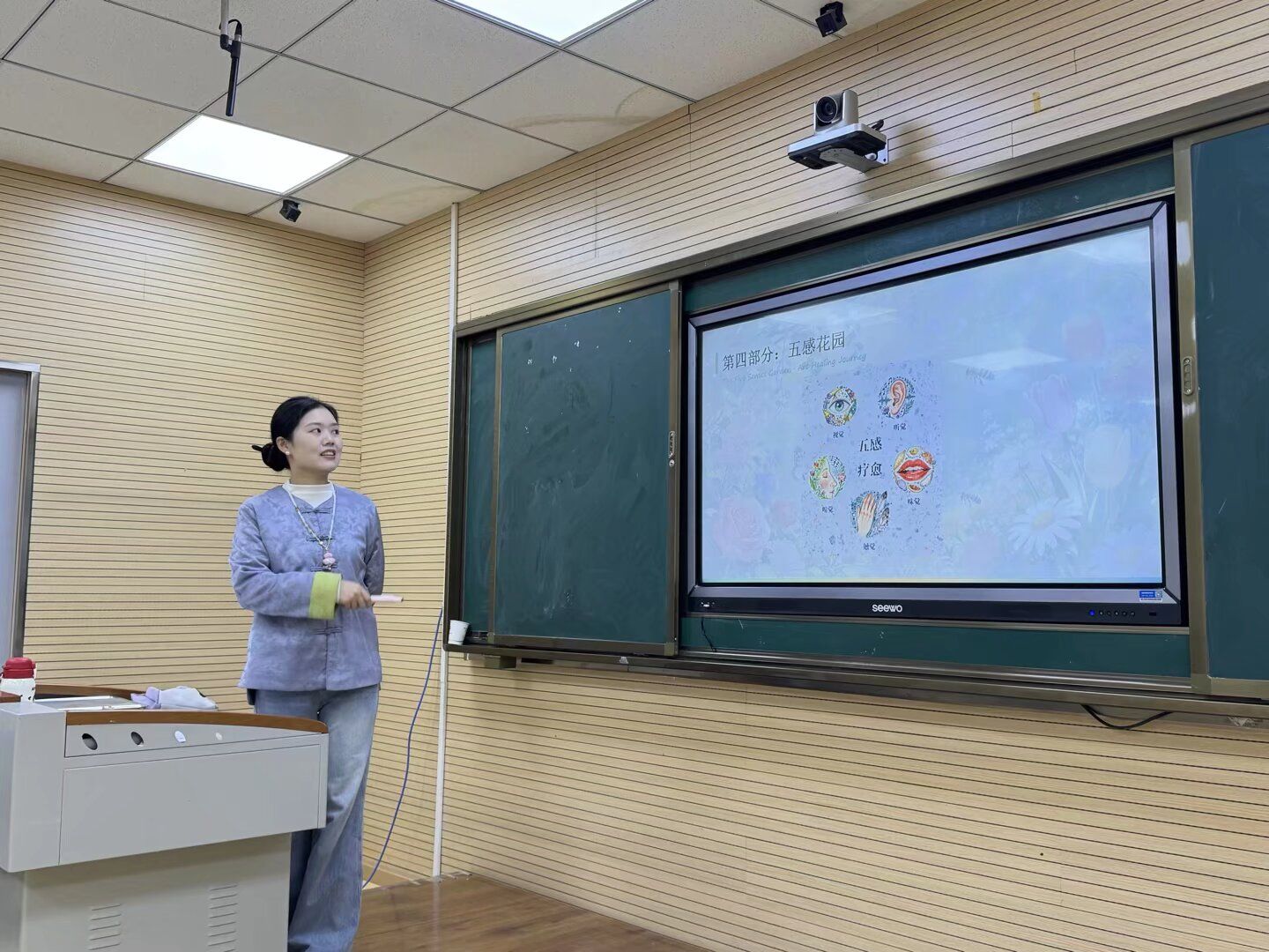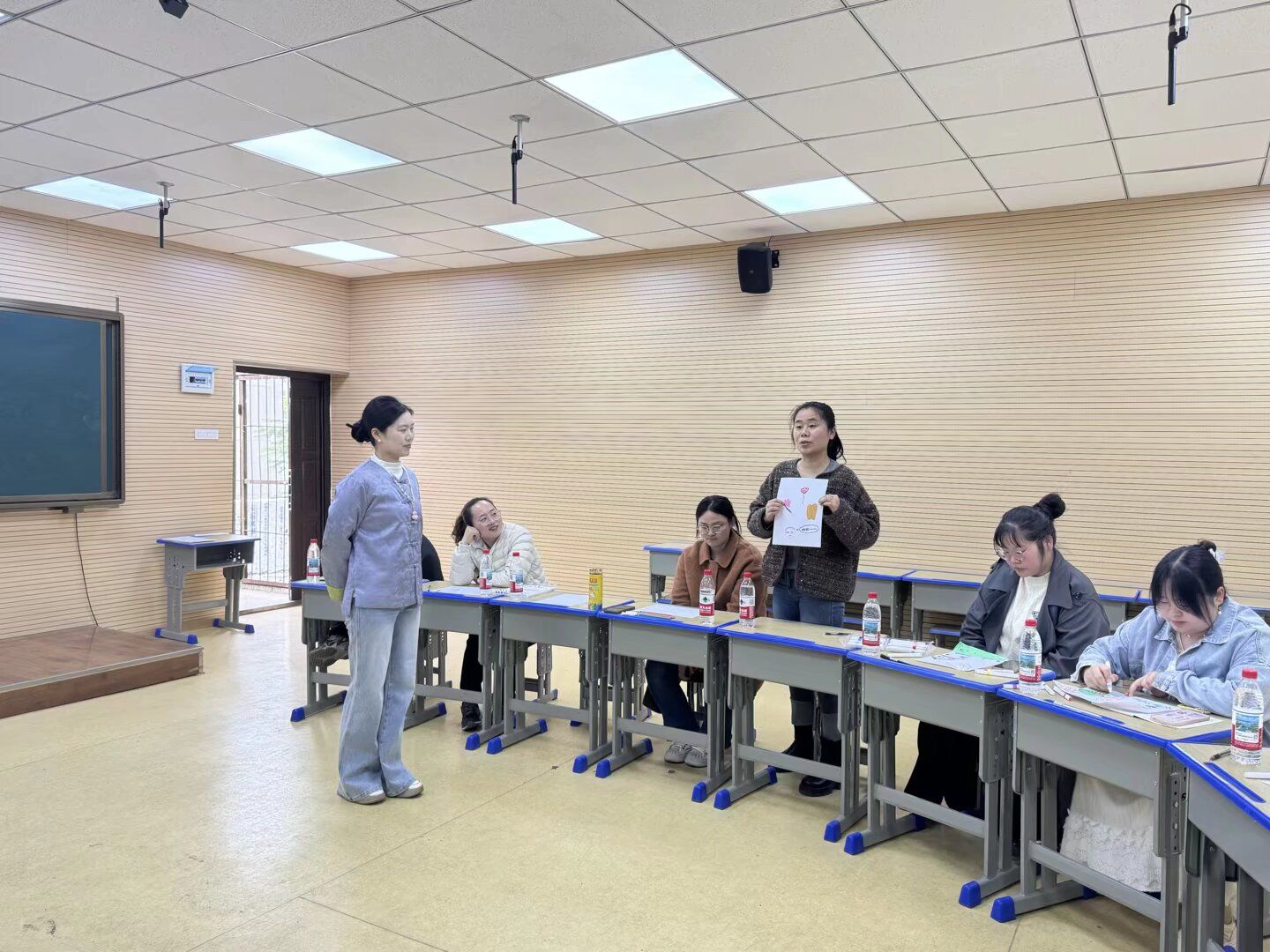 在胡雨婷老师的精心设计下,活动环节层层递进、专业与趣味相融。破冰游戏后,老师们通过专业压力测试与耶克斯—多德森定律讲解,科学认知压力的本质、来源及压力与绩效的倒U型关系,建立正确的压力观;“吐槽大会”让老师们两两结对,在倾诉与倾听中尽情宣泄情绪,卸下心理包袱;ABC理论与认知转换案例分析,教会大家从调整自身认知出发,从根源化解负面情绪,实现心理状态的积极转变;正念体验环节引导老师们专注当下、觉察自我,有效舒缓焦虑;五感花园艺术疗愈则让大家在创意创作与分享中,深度放松身心,表达潜意识情感。最后的总结分享环节,老师们踊跃交流活动感悟,在彼此启发中巩固学习成果,增强了教师群体的归属感与凝聚力。