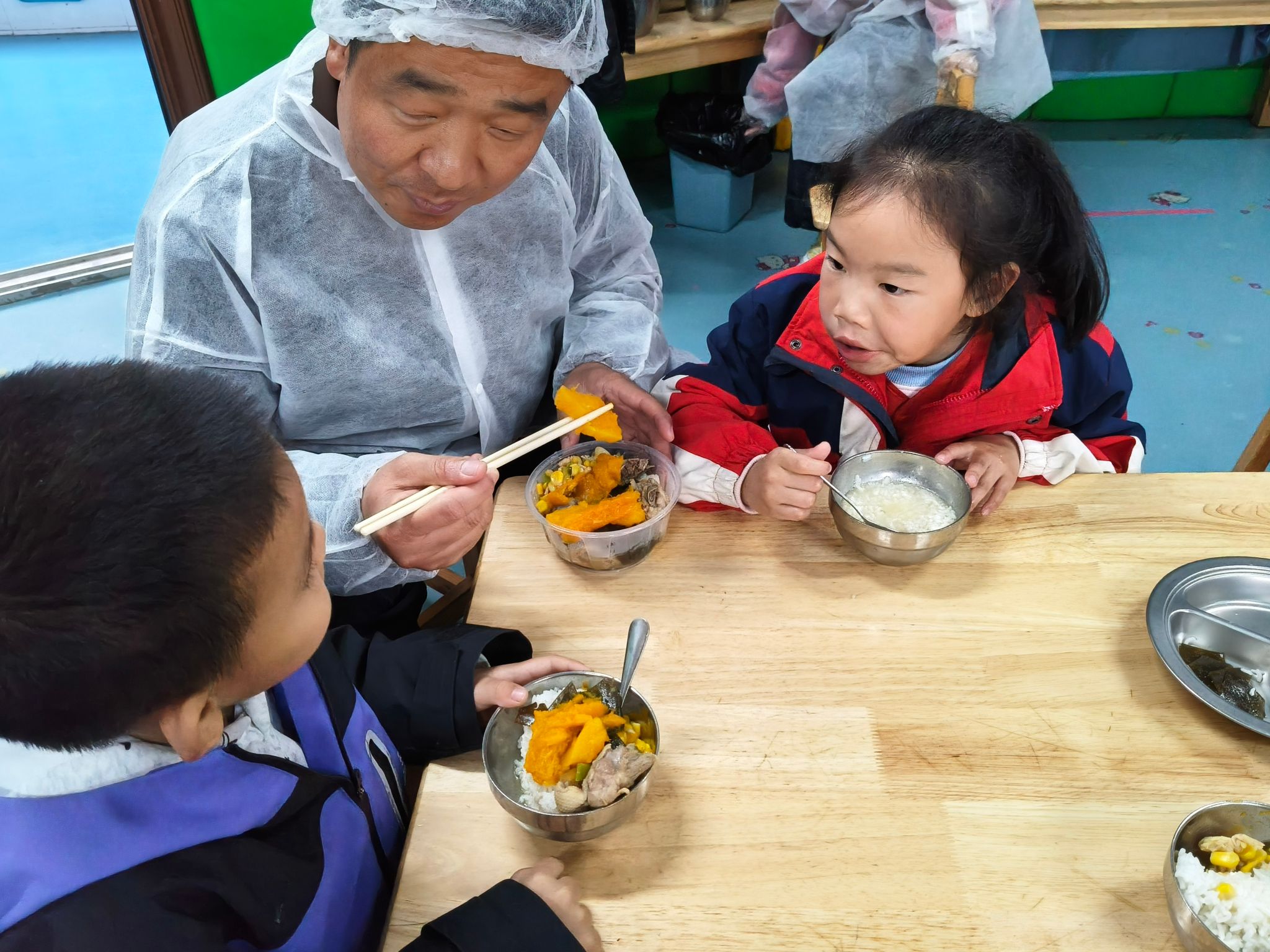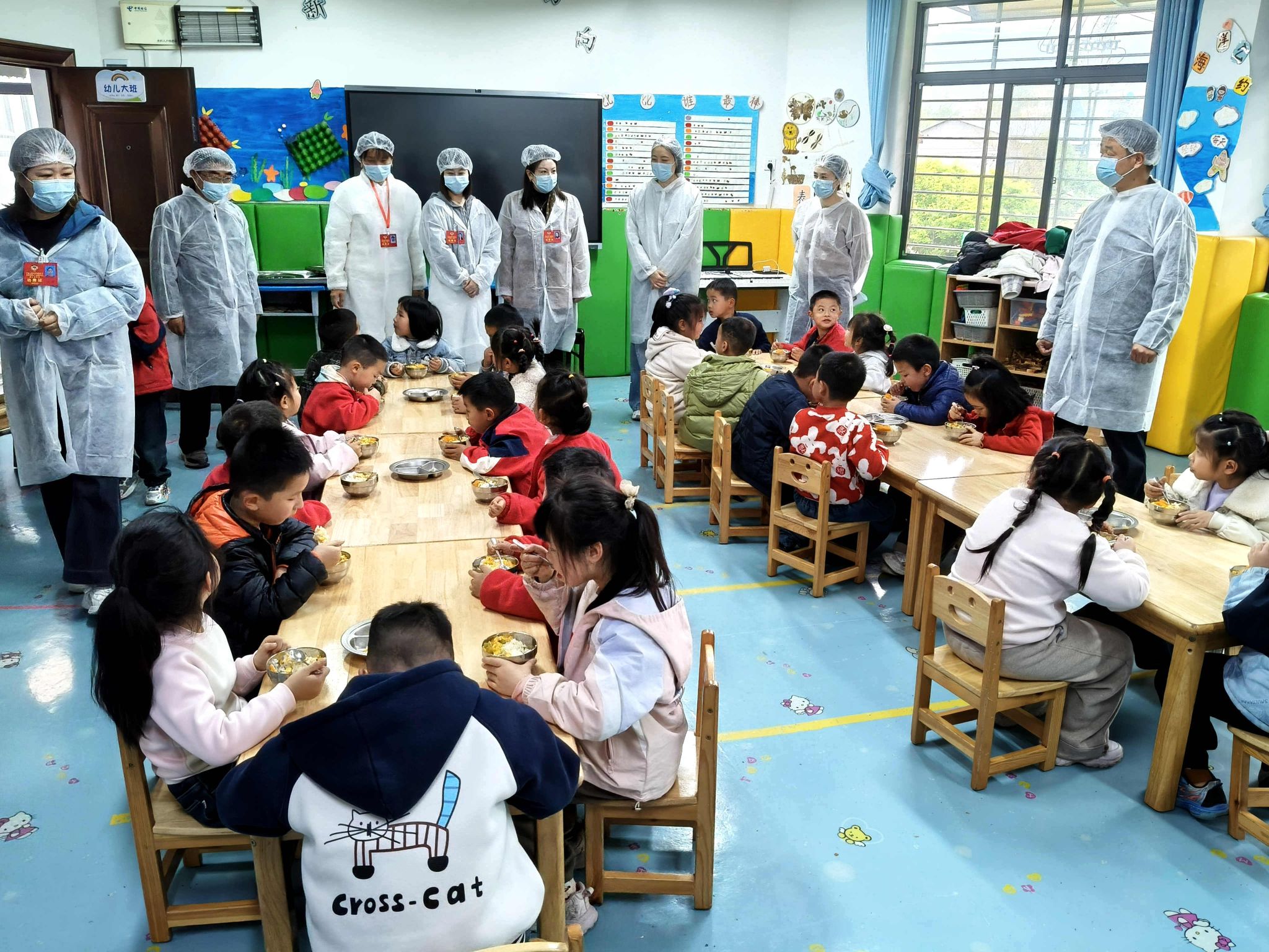 午餐时分,监督组成员洗净双手、消毒入场,分散进入各班,与孩子们同桌共餐。他们亲口品尝当日的饭菜,感受其口味、软硬、温度是否适配幼童;他们俯身倾听孩子对菜品的真实评价,观察用餐习惯,并轻声鼓励“不浪费、慢慢吃”。这不再是一场简单的“检查”,而成了一次温暖的“陪伴”。在与教师、厨工的交流中,监督组进一步了解日常餐食调整的逻辑,从消费终端反推流程优化,让建议更接地气、更可执行。