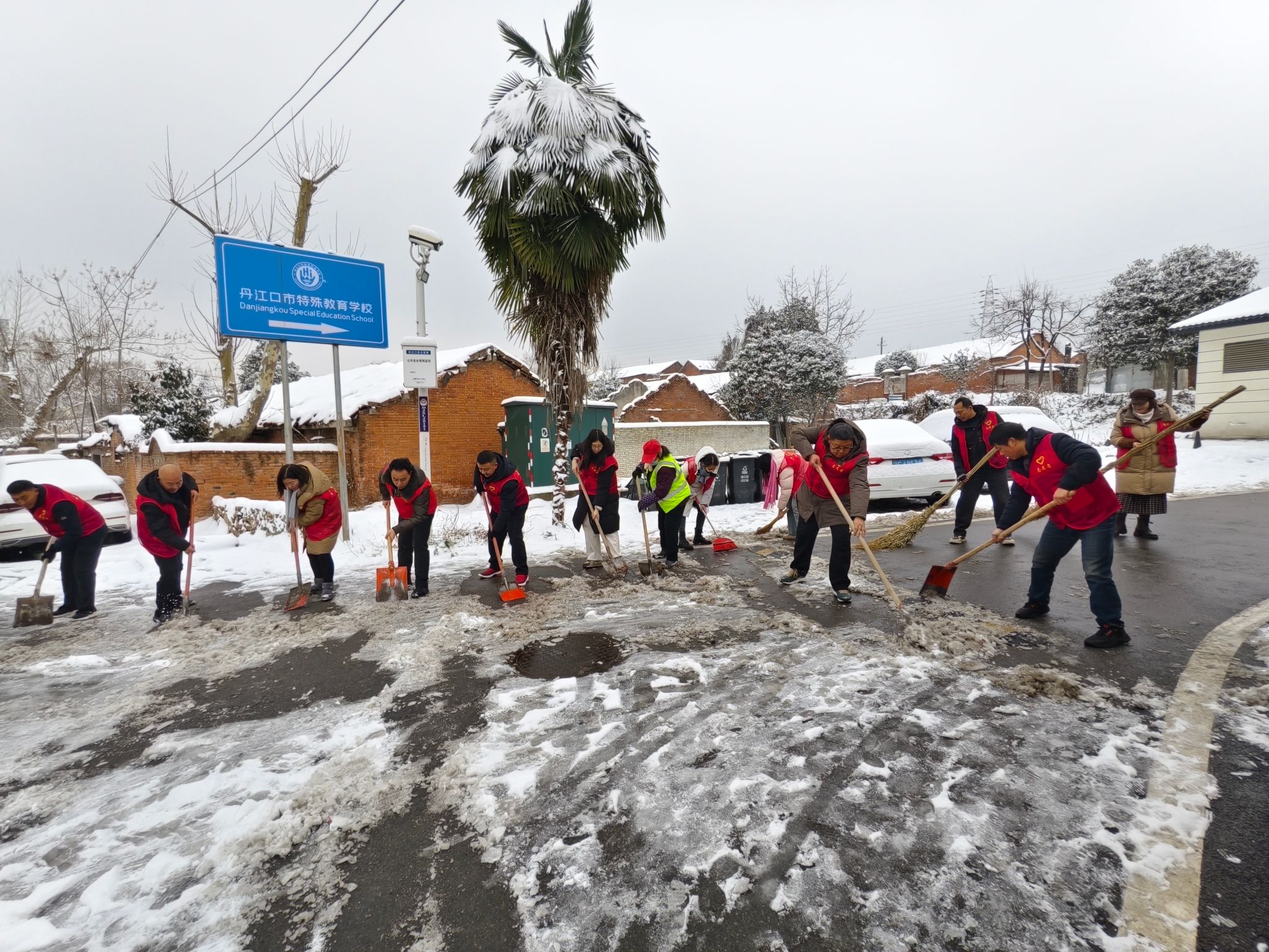 师生聚力清积雪 劳动励志促成长