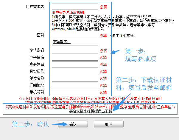 管理员将定期根据邮箱收到的实名认证材料进行用户审核。通过审批的通讯员可以从以下地址登陆。