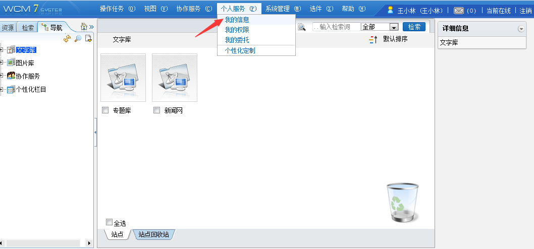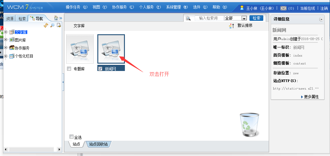 如果是学校通讯员“幼儿园_王小林”,登录后,依次双击打开“新闻网”—“通讯员”—“学校”—“幼儿园”,进入最终空白页面(如图九)。