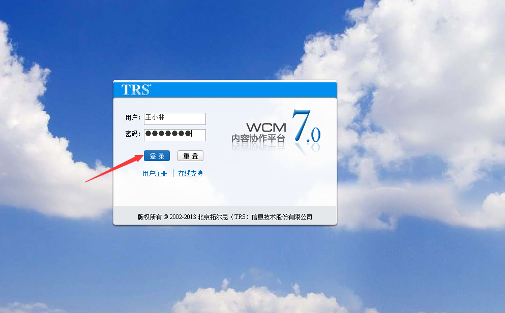 进入登录页面,输入用户名密码,点击登录(如图四)。