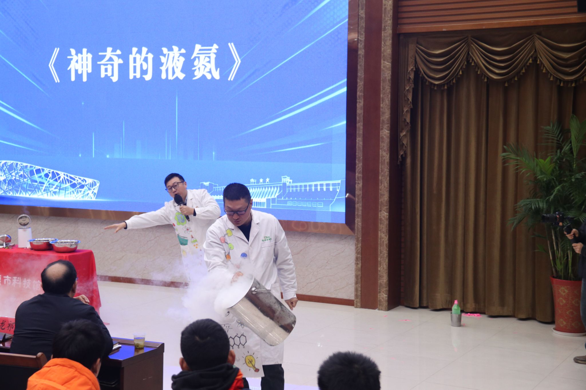 开幕式上的科技表演秀将活动推向高潮。《神奇的液氮》表演中,倾倒的液氮瞬间升腾起如魔法般的白色云雾,引发现场阵阵惊叹;《掌中火》演示了可燃气体的安全燃烧原理,《乒乓球大炮》则生动展示了空气涡环的产生与传递。三个实验将抽象的科技概念转化为可感、可知、可玩的沉浸式体验。表演结束后,学生们眼中仍闪烁着意犹未尽的探索光芒——这也正是本场表演的初衷所在。