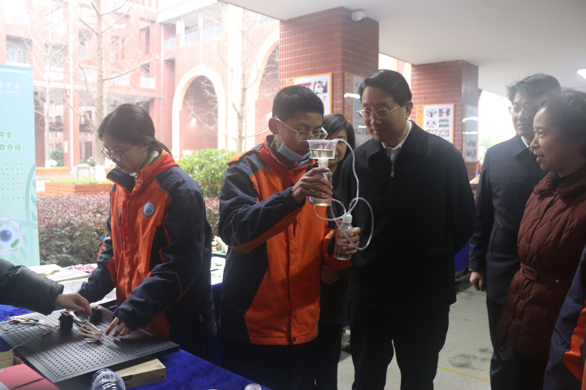 启动仪式后,与会嘉宾沉浸式参观展区。本届科技节采用“动态+静态”融合布展模式,实现了“看、听、玩、学”一体化的深度体验。静态展区涵盖物理、化学、生物、地理等学科模型与实验,生动揭示科学奥秘;动态体验区则成为科技“游乐场”,机器人、无人机表演精彩纷呈,“无人机足球竞赛”等项目吸引师生驻足互动。此外,生态科普、视力健康、急救演练等内容,延伸了科普的广度与温度。