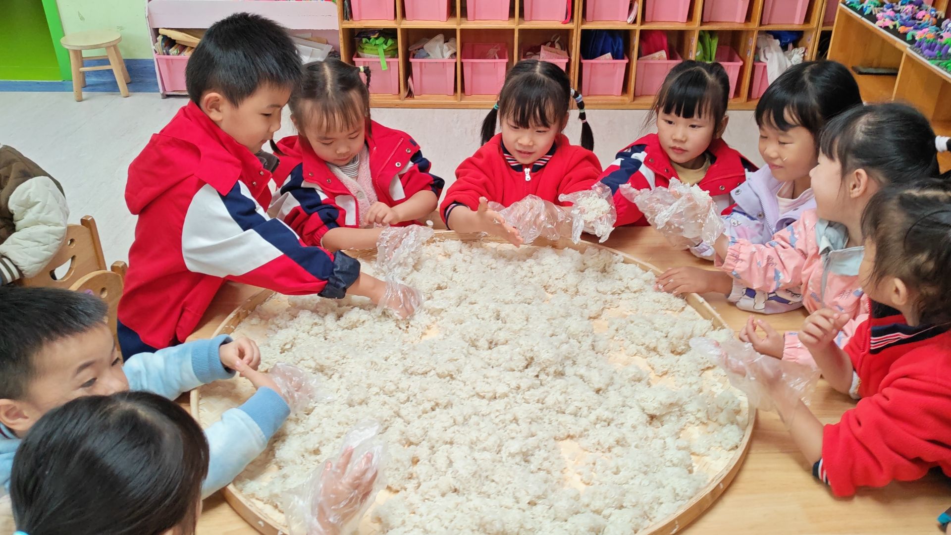 围绕“黄酒”主题,各班还拓展开展了健康饮食、调味妙用、物质变化等相关活动,并在班级创设“房县黄酒工坊”小角落,让孩子们可以随时重温制作过程,在游戏中延续文化记忆。