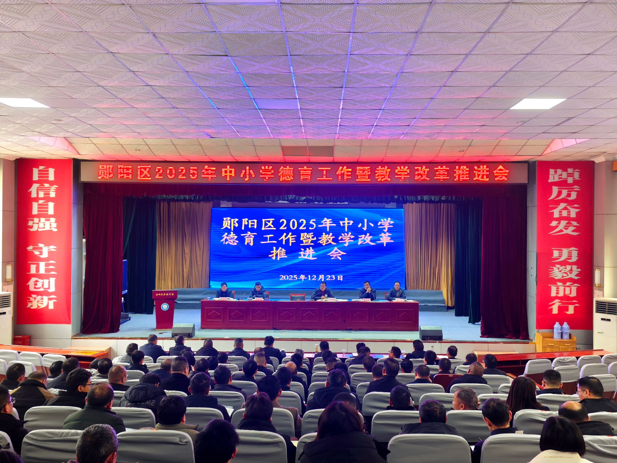 12月23日,郧阳区2025年中小学德育工作暨教学改革推进会在区实验中学礼堂召开。会议旨在全面总结全区中小学德育与教学改革经验,部署下一阶段重点任务,推动区域教育高质量发展。