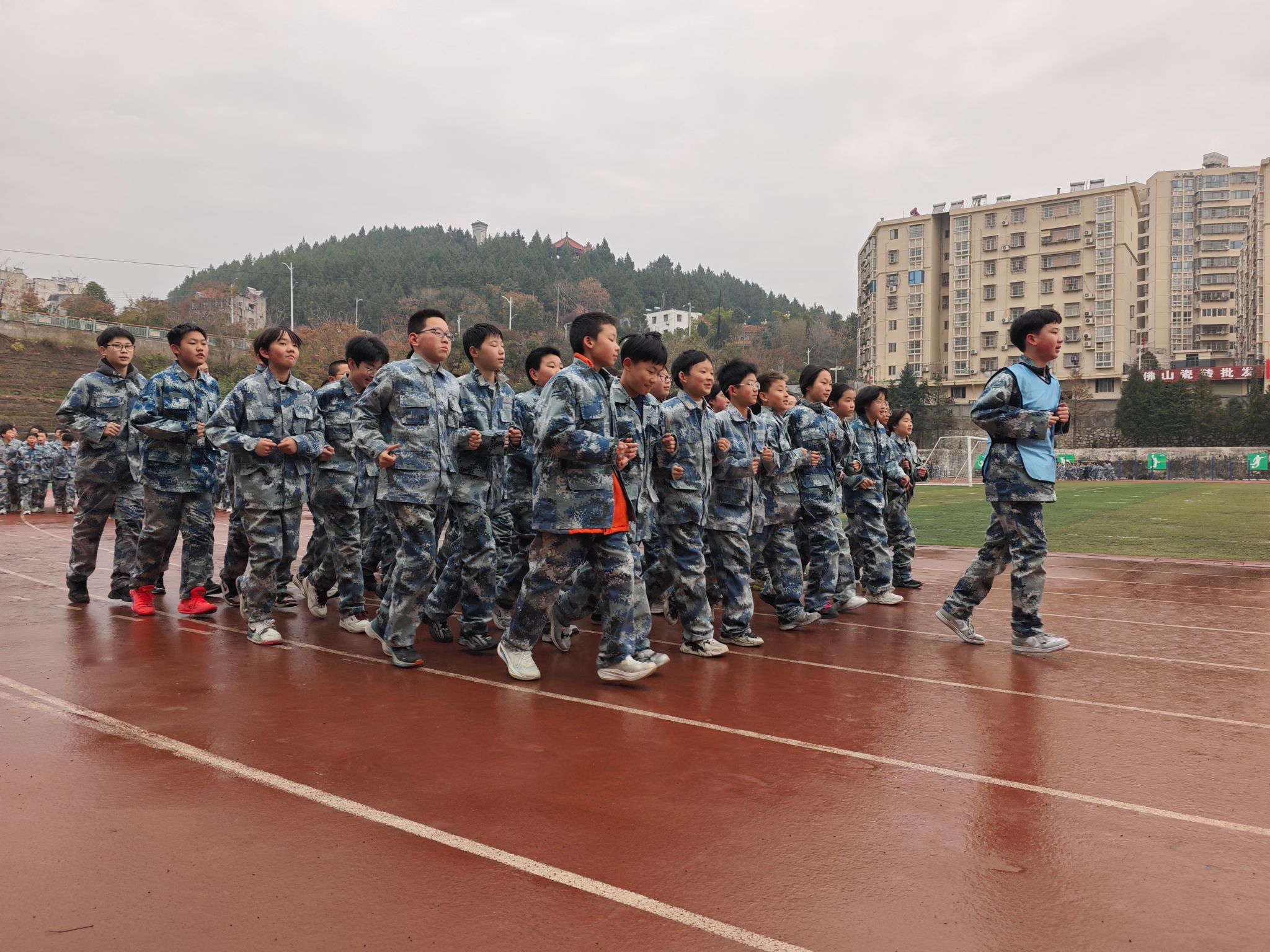 会前,与会代表实地观摩了区实验中学的德育课堂、“迷彩”思政课、心理健康中心及学生阳光大课间。德育课上,实验中学展示了一节以“爱家爱校爱乡爱国”为主题的德育公开课。课堂上,教师通过情境创设、小组讨论等方式,引导学生深入思考个人与爱家、爱校、爱乡、爱国的关系。随后,代表们参观了学校心理健康成长中心,该中心配备专业设施,提供个别辅导、团体活动等服务,成为学生心理健康的重要保障。校园操场上,学生排成整齐划一的跑步队伍,展现了昂扬向上的精神风貌。
