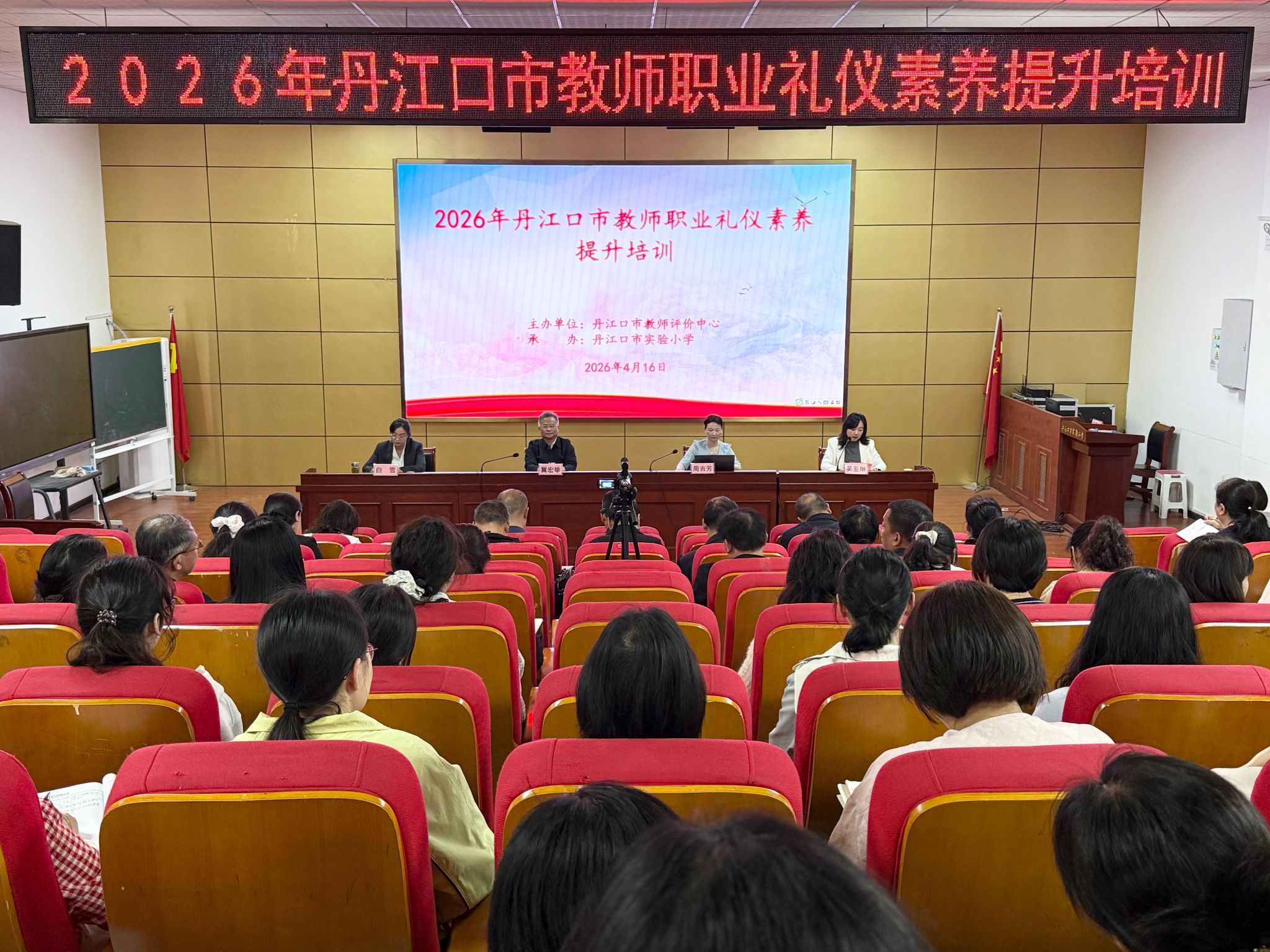 4月16日下午,丹江口市教师职业礼仪素养提升专题培训在实验小学阶梯教室圆满举行。本次培训由市教师评价中心主办,实验小学承办,汉江科技学校高级讲师周吉芳担任主讲。培训旨在规范全市教师职业行为,提升教师礼仪素养,塑造新时代师表形象,切实加强师德师风建设。