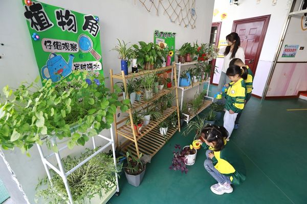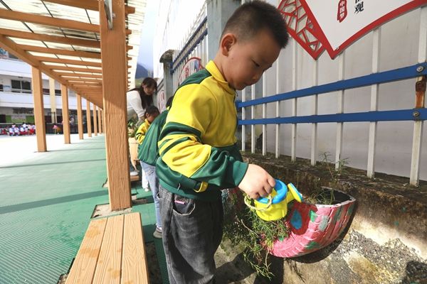 10月9日,竹山县宝丰镇中心幼儿园的孩子们在老师的指导下,开展为绿植浇水、百变黏土等活动,这是该园环创工作显匠心的一个缩影。