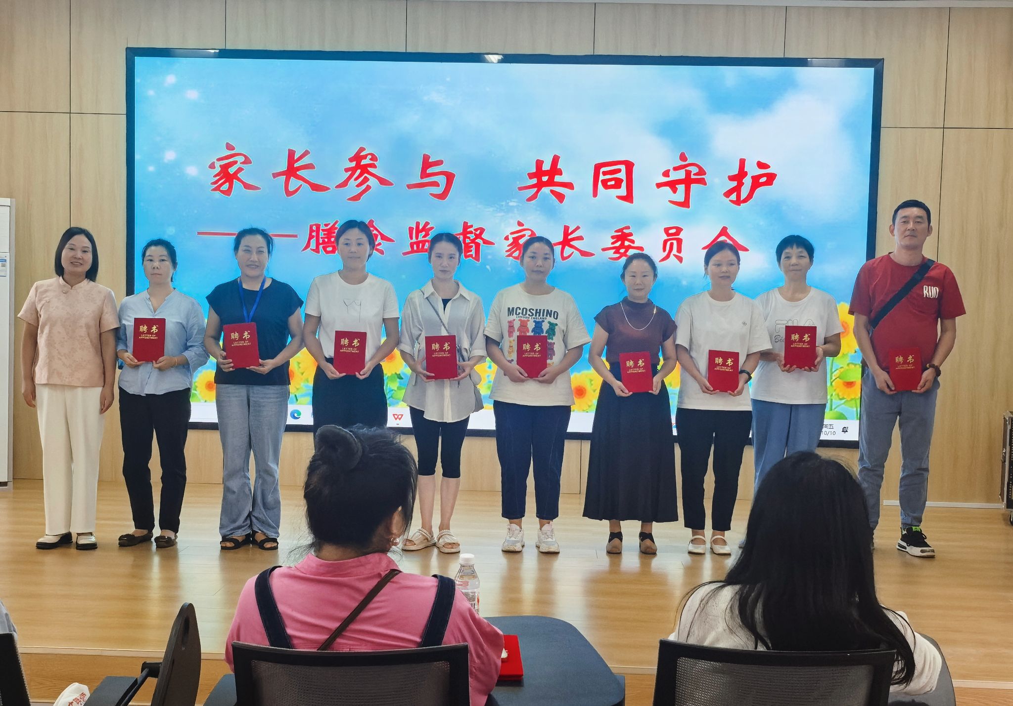 在热烈的氛围中,张园长为17位家长委员会成员颁发了聘书,这份聘书不仅是荣誉,更象征着家园携手的责任与信任。会议结束后,家长委员会成员在陈园长的引导下参观了园所食堂,实地查看食材储存间、烹饪操作区等场地,直观感受食堂的卫生管理与安全保障;随后,家长们参与幼儿陪餐环节,亲身体验餐食口感与营养搭配,餐后认真填写调查问卷与陪餐记录,为幼儿园膳食工作提出宝贵建议。