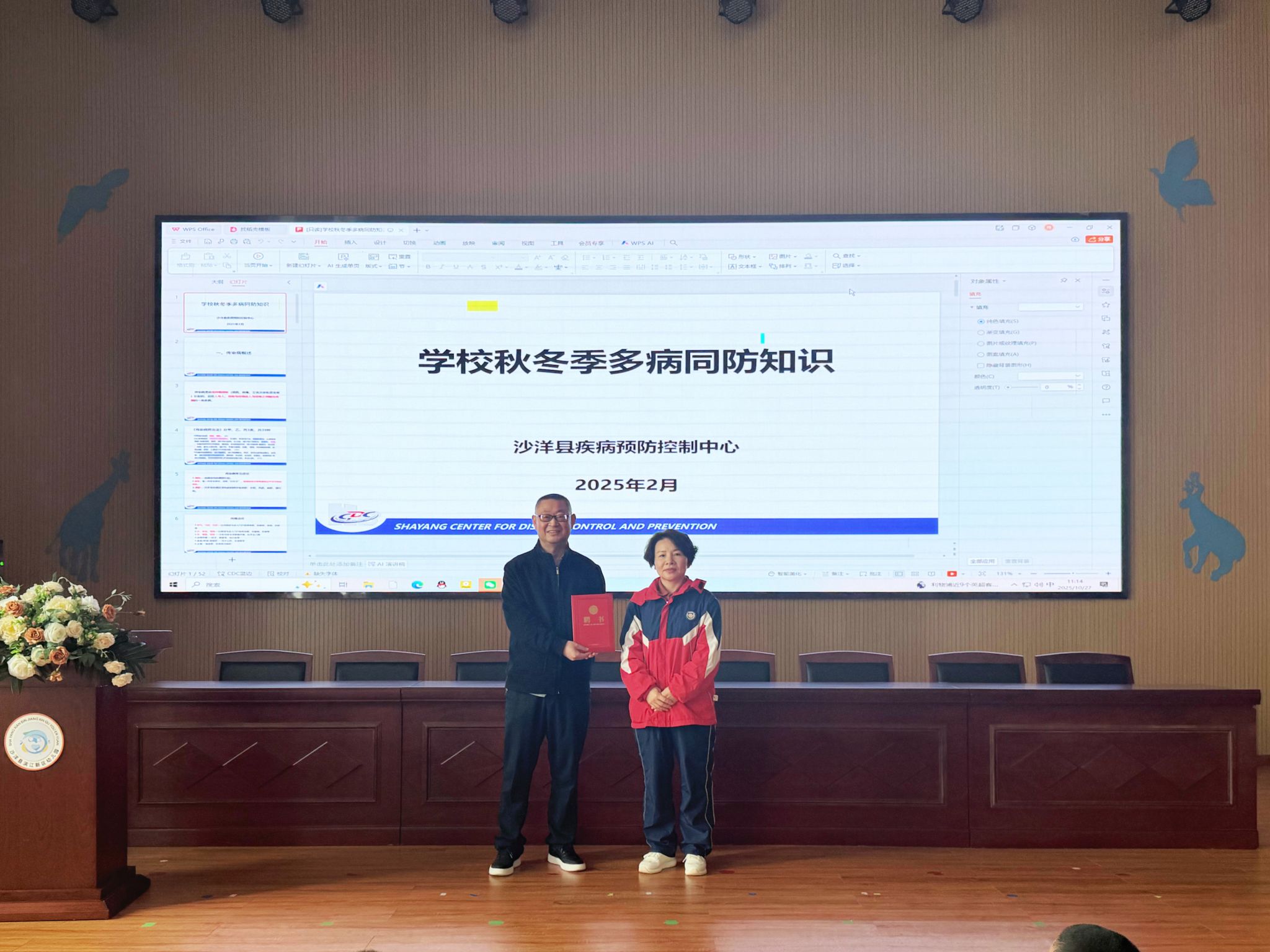 宣讲结束后,沙洋县滨江新区幼儿园园长汪玲为张校长颁发聘书,并代表全体师生对他长期以来对幼儿园卫生保健工作的专业指导与支持表示衷心的感谢。这一份聘书,不仅是对张校长专业能力的肯定,更是双方携手为幼儿健康成长保驾护航的庄严承诺。