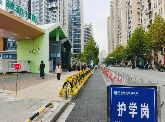 幼儿入园、离园高峰时段的校门口拥堵问题,曾是竹山县实验幼儿园的“老大难”。由于校门口场地狭窄,接送车辆随意停靠、行人流线交叉叠加,每天早晚都上演着“人车混行”的紧张场景——家长们牵着孩子在车流中穿梭,司机们小心翼翼地挪动车距,不仅造成短时间交通堵塞,更让幼儿安全面临潜在风险。“最揪心的就是下雨天,雨伞挡着视线,车笛声、呼喊声混在一起,每次接送都得绷紧神经。”提及过往,家长王先生仍记忆犹新。