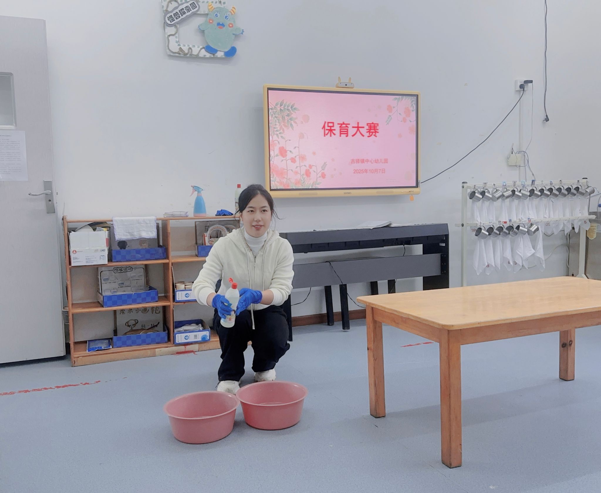 为深化保育员队伍专业化建设,提升日常保育工作质量,襄州区古驿镇中心幼儿园于2025年11月7日举办“匠心护幼,技能争锋”保育员技能大比拼活动。全园保育员通过知识笔试、实操考核两大环节展开竞技,重点展示擦桌子、叠被子等基础保育技能,以赛促学、以赛促练,彰显保育工作的科学性与温度。