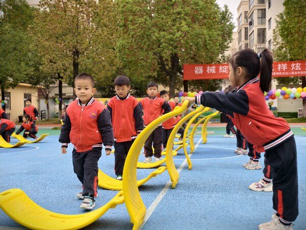 活动中,小班幼儿动作稚嫩可爱,充满童真;中班幼儿配合默契,队形变换流畅;大班幼儿则展现出较强的节奏感和表现力。平衡板、彩旗、筷子、脸谱等道具在他们手中仿佛有了生命,随着音乐律动发出清脆声响,构成了一幅生动的童趣画卷。