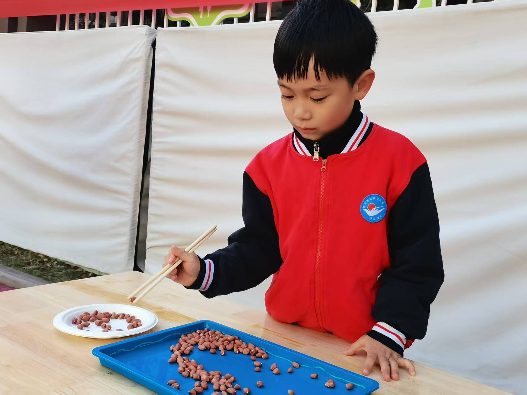 大班组的比赛聚焦幼小衔接关键能力,设置“叠被子”“穿脱鞋袜”“筷子夹花生米”三项挑战。随着老师一声令下,小选手们迅速投入“战斗”:叠被子环节中,孩子们熟练地将蓬松的被子铺平、对折、整理边角,动作干脆利落,一床床被子瞬间变成整齐的“豆腐块”;穿脱鞋袜环节,他们不仅快速完成,还能将袜子卷成小团收纳,引得观众连连称赞;最考验精细动作的“筷子夹花生米”环节,孩子们屏气凝神,用稚嫩的小手稳稳夹起一颗颗花生米,成功放入碗中,现场掌声此起彼伏。大班幼儿王思宇自豪地说:“我以后要自己叠被子、整理书包,做真正的小学生!”