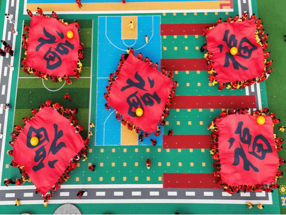 入场仪式上,国旗队、园旗队昂首阔步,伴随国歌,五星红旗冉冉升起,全场肃立致敬。园长致辞中,既传递了特色的育人理念,也深情回望抗战岁月,阐释了传承传统文化、弘扬匠人精神、践行体育精神的初心,致辞落下,彩烟绽放将现场氛围推向高潮。