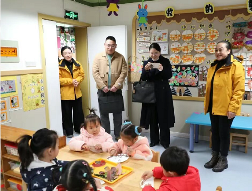 调研组一行在掇刀石幼儿园党支部书记、园长刘琼玲的陪同下,实地察看了幼儿园工坊、活动室、户外游戏区及食堂等场所,观摩了教育脑科学活动课程,对幼儿园温馨童趣的环境创设、丰富多彩的教学活动、规范细致的安全管理及科学合理的膳食搭配给予高度肯定。