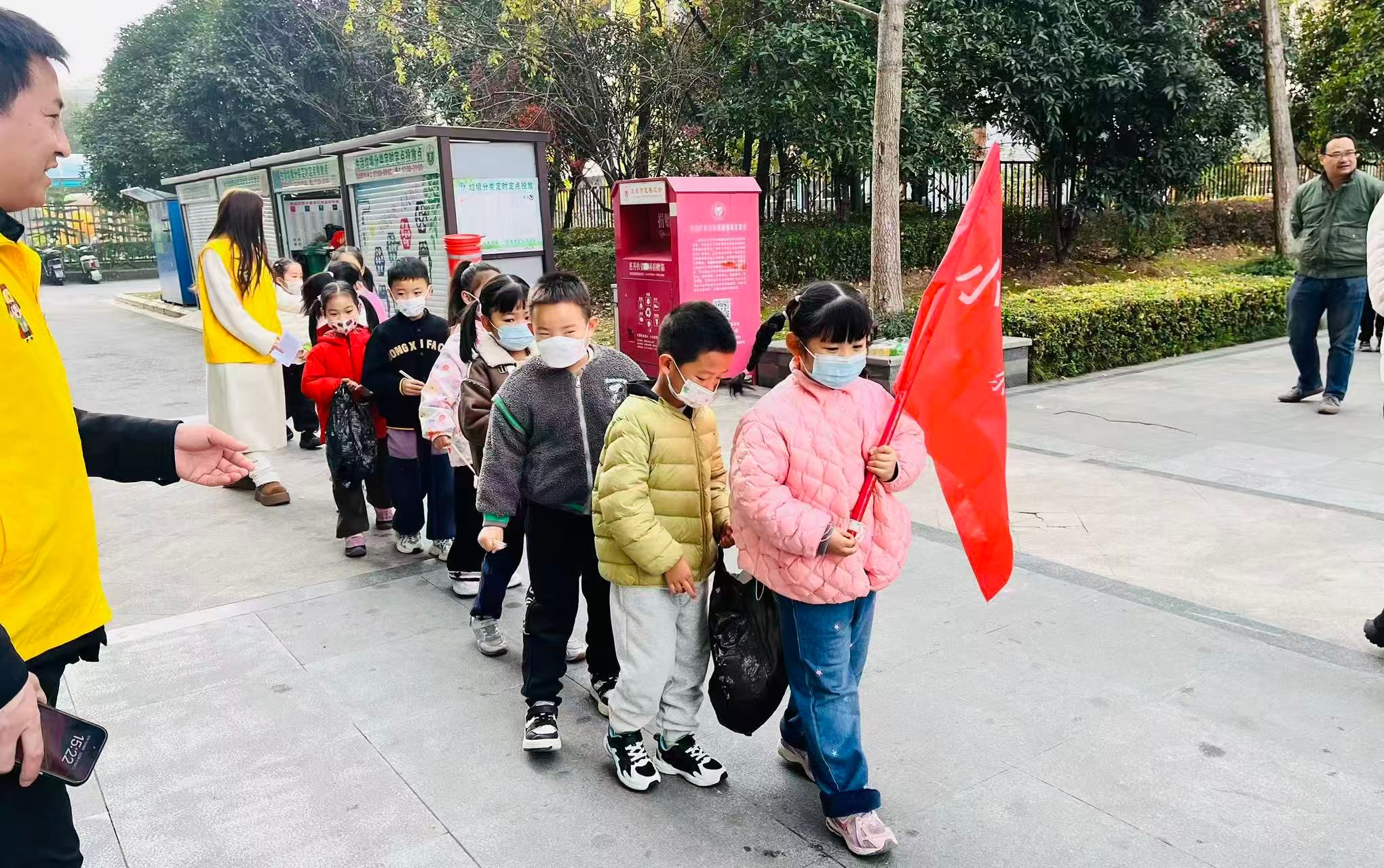 为深入践行绿色发展理念,厚植青少年生态文明素养,搭建家校社协同育人平台,12月11日,宜昌市伍家岗区中心幼儿园教联体联合伍家岗区城市管理执法局、东艳路社区及三峡星光青少年志愿服务队,组织“小小垃圾分类督导员”走进社区,开展沉浸式垃圾分类实践活动,以童真之力激活社区环保“微细胞”,推动文明新风尚在邻里间落地生根。