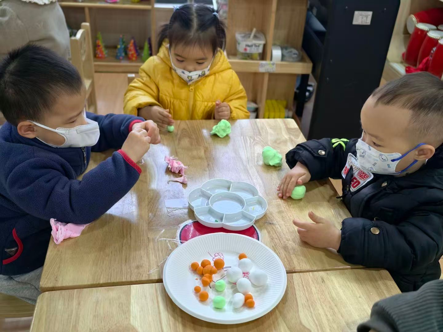 活动分龄开展,趣味十足。小班萌娃在动画与故事中初识冬至,小手揉搓彩色面团,体验搓汤圆的乐趣;中班幼儿探秘南北方冬至习俗差异,听完防冻耳的民俗故事后,分组学包饺子、玩“饺子蹲”游戏,忙得不亦乐乎;大班孩子化身“民俗小达人”,分享家庭冬至习俗,还在民俗工坊里包饺子、剪窗花,制作“九九消寒图”开启冬日打卡。