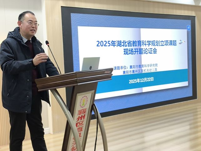 2025年12月22日下午,湖北省2025年度教育科学规划立项课题现场开题论证会在襄州区直机关幼儿园顺利举行。会议邀请襄阳市教科院副书记、副院长郭强,学前教育学博士、湖北文理学院教师教育学院院长刘天娥,襄阳市教育科学研究院规划办主任李因东进行现场指导,课题组成员及城区骨干教师60余人参与研讨。
