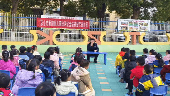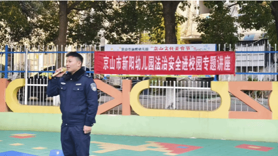 12月25日下午,京山市新阳幼儿园开展“法治安全护成长”主题活动,以趣味形式为幼儿筑牢安全防护网。活动邀请京山市公安局新市派出所民警,也是新阳幼儿园法治副校长周子涵警官走进校园,用童言童语解读安全知识。