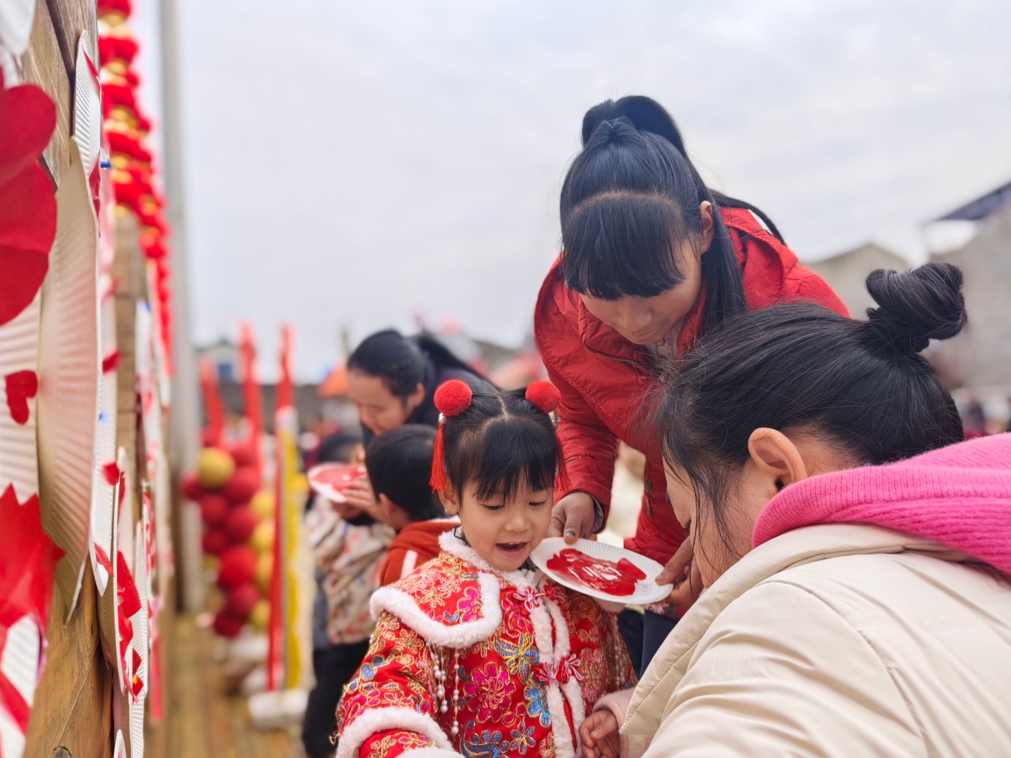 活动期间,各年段结合幼儿年龄特点打造了差异化亲子体验项目。小班组以“萌娃迎新纳福 童趣喜迎新年”为主题,通过“套福字”“吸福气”“粘福字”等趣味游戏,让萌娃们在动手动脑中感受“福”的寓意;中班组围绕“民俗寻趣·乐享传统”,开展十二生肖猜谜、舞龙、剪窗花、写福字等活动,幼儿在欣赏体验传统舞龙、亲手剪裁窗花的过程中,沉浸式感受民俗文化的魅力;大班组以“文化传承·喜迎马年”为主题,亲子合作体验非遗版画制作,创作“年年有余”“马年大吉”等特色作品,了解传统印刷工艺,同时通过新年联欢会、“福气滚滚来”游戏等环节,展现才艺、收获祝福。