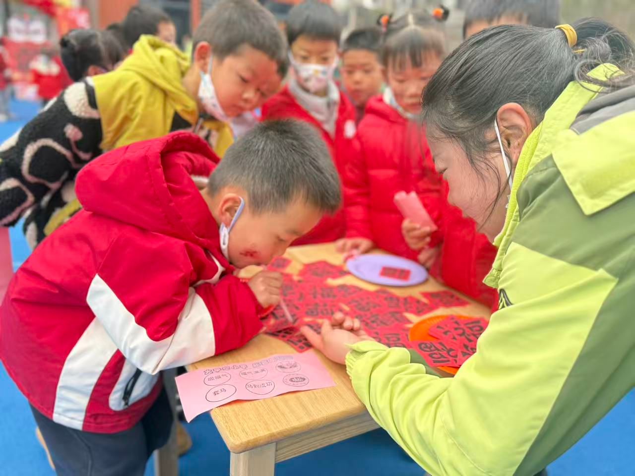 庙会现场喜庆热闹,笑语盈盈。美食街区飘香四溢,“热气腾腾”的关东煮、香甜软糯的汤圆、晶莹剔透的冰糖葫芦等传统小吃,让孩子们在品尝中感受舌尖上的年味。游戏区域更是精彩纷呈,“打年兽”的勇猛、“小马过河”的协作、“吸福气”的趣味、“套马”的专注,以及“红红火火中国节”的创意制作,一个个富有传统韵味的游戏吸引着孩子们踊跃参与。他们在游戏中学习规则、互帮互助,在分享美食、合作闯关中自然地进行交流,大方地展示自己,社交能力与语言表达能力得到了充分的锻炼。