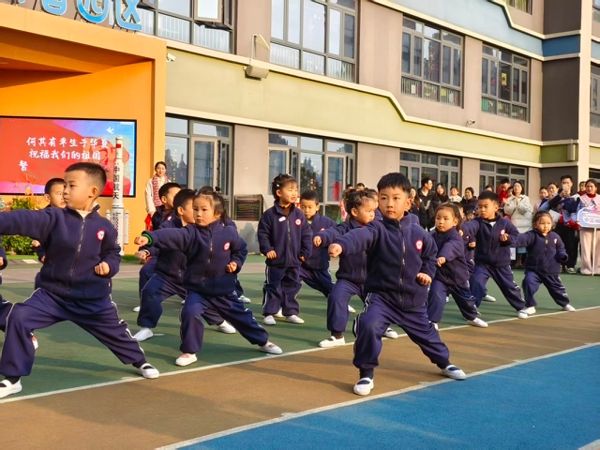 瞧!大班的萌娃们化身小小醒狮传人,金灿灿的狮头套一戴,稚嫩的小脸上满是认真。伴着铿锵的锣鼓声,他们踩着欢快的鼓点摇晃狮头,灵动的模样瞬间点燃全场气氛。紧随其后,武术队的小健将们身着整齐的练功服登场,抱拳、出拳、踢腿,一招一式刚劲有力,稚气的脸庞上透着十足的精气神,引得在场家长们掌声、欢呼声此起彼伏,叫好声一浪高过一浪。