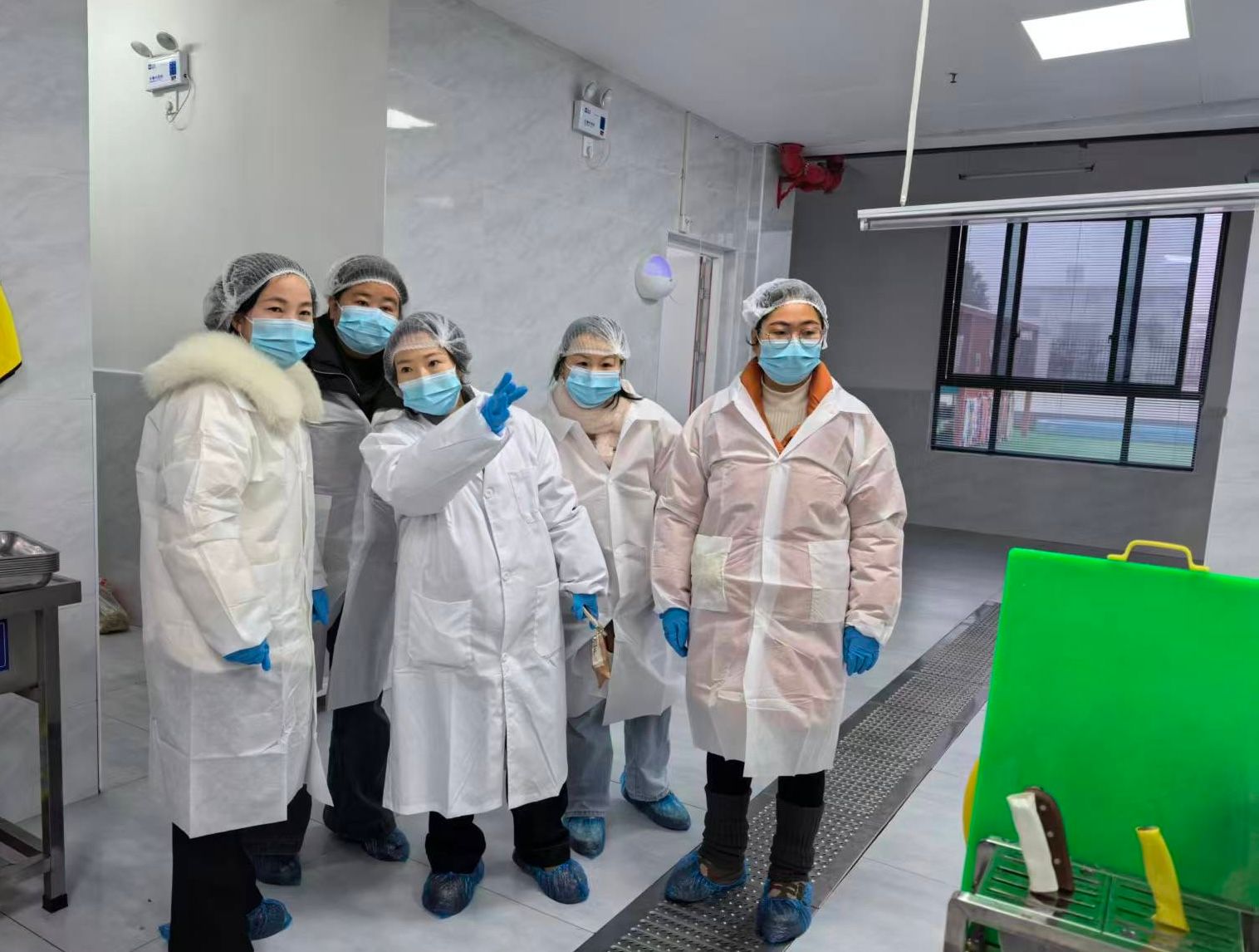 活动中,家长代表们先走进食材验收区,全程观摩食材采购票据核对、品质查验、重量测量等流程,详细了解食材采购渠道与验收标准。随后,大家穿戴好卫生衣帽进入食堂烹饪间,实地查看食材清洗、切配、烹饪的标准化操作,以及厨房卫生消毒、生熟分开等细节。