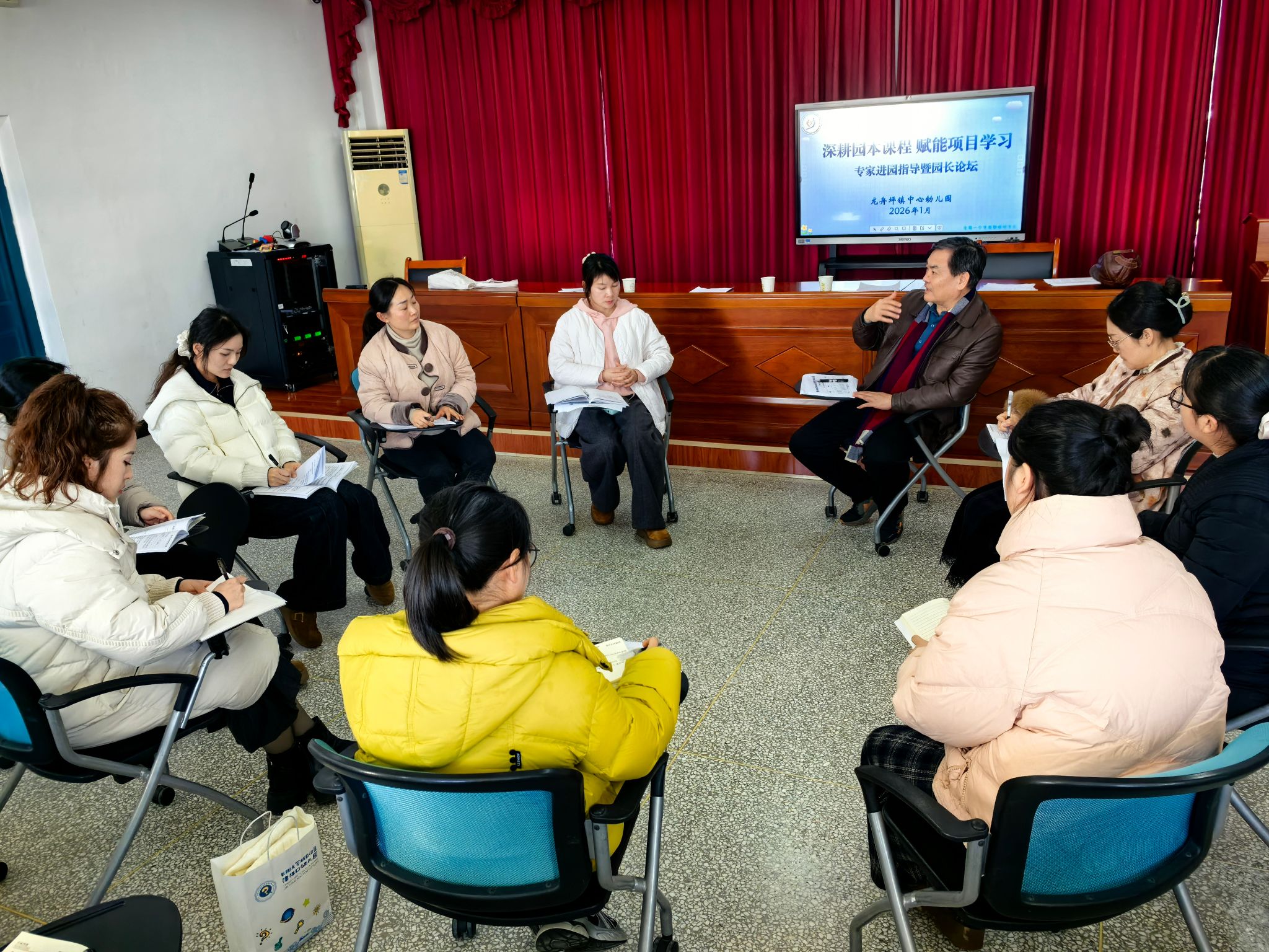 活动中,韩主任围绕“园本课程与项目式学习深度融合”核心议题,从理论层面剖析二者融合的逻辑内核与实施原则,结合多地典型案例,拆解课程融合的实操路径与方法技巧,为参会教师梳理出清晰的课程建设思路,有效化解了一线教师在课程融合实践中的认知困惑。