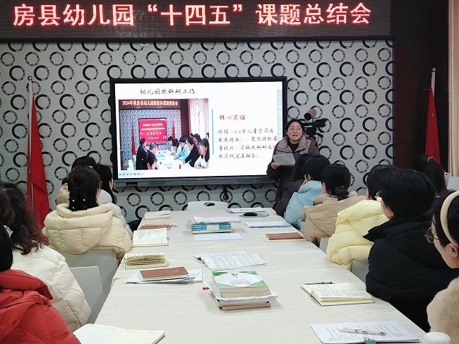 1月29日,房县幼儿园召开课题研究总结会。会议系统总结了全园过去五年的教科研工作,交流了在研课题进展,并部署了下一阶段研究重点与成果转化任务。园领导及全体带班教师参加会议。