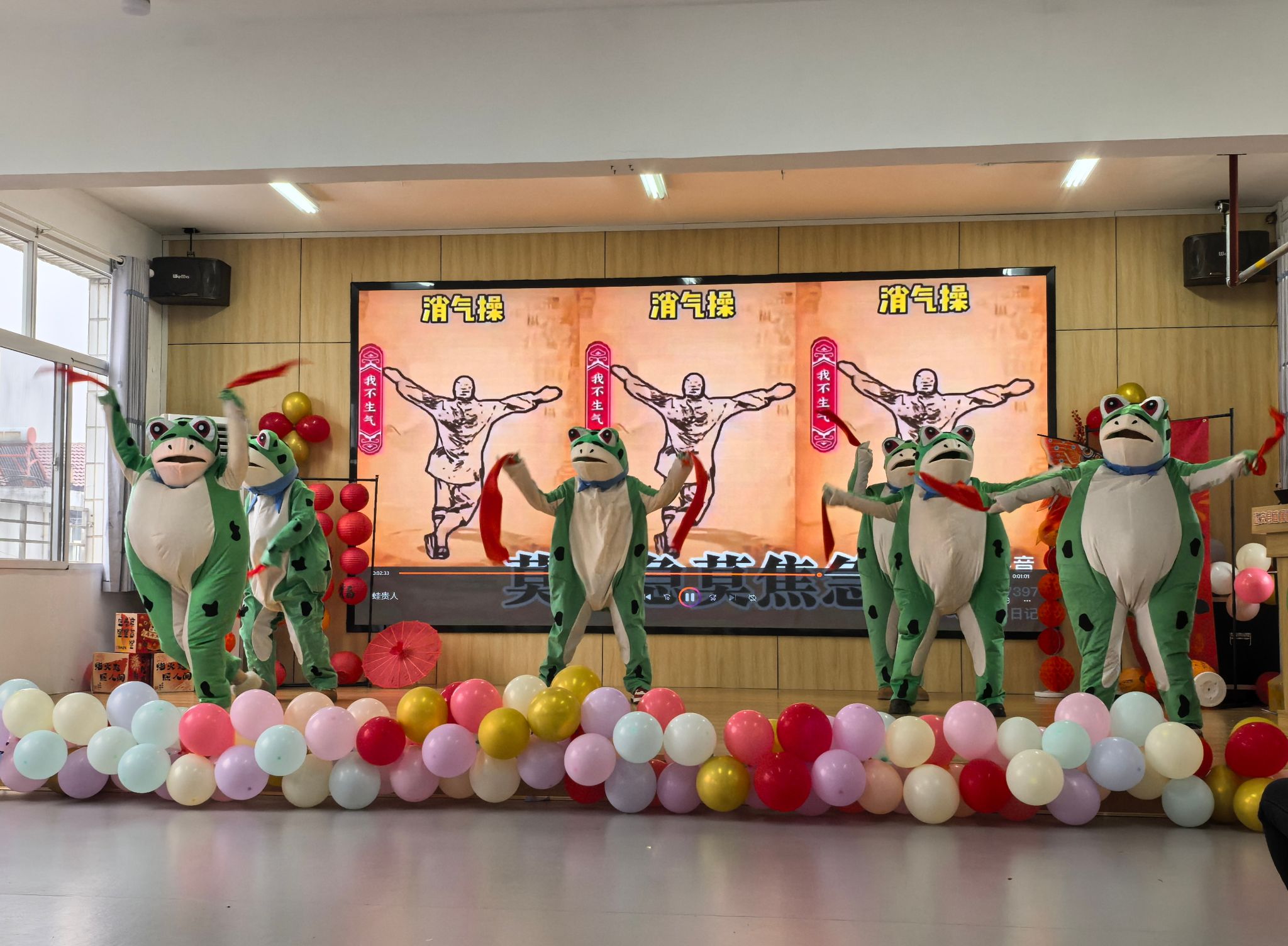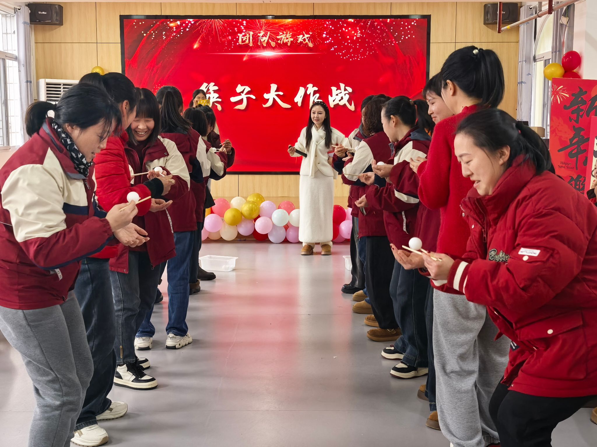 趣味互动游戏环节让现场氛围推向高潮。机关幼儿园教职工带来的开场舞《蛙贵人来了》童趣盎然、活力四射;猜歌名、零食大作战等游戏中,大家默契协作、踊跃参与,欢声笑语间拉近了距离、凝聚了情谊,充分展现了教联体教职工团结向上、积极乐观的精神风貌。