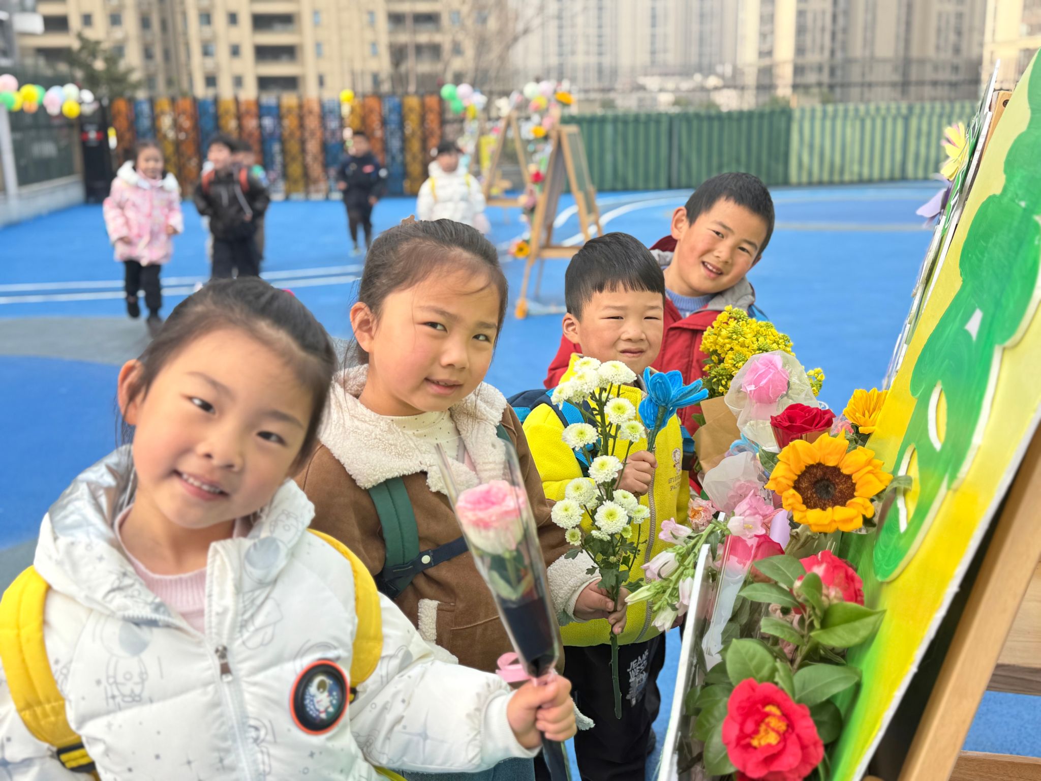 入园环节趣味满满,孩子们手持鲜花,在“花语签到板”插花签名,又在种子领取区挑选心仪花种,将“成长希望”捧入班级,沉浸式感受春日与成长的美好。操场典礼上,伴随着雄壮的国歌,五星红旗冉冉升起;园长妈妈送上温暖寄语,期许孩子们如花儿般绽放独特光彩;幼儿代表稚嫩的发言,道出对新学期的憧憬。师生共同律动《快乐小马》,欢快的节奏让现场氛围愈发热烈。