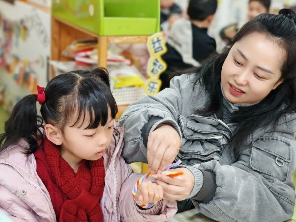 活动现场温馨而有趣。手工制作环节,老师和孩子们围坐在一起,一根根简单的扭扭棒,在灵巧的双手中也变得丰富起来,从作品的设计到作品完成,老师对孩子手把手教学,其乐融融。手工环节后,在操场上开展了趣味游戏。赛场中老师们兴致满满、热情高涨、积极拼搏,整个校园充满了欢声笑语。