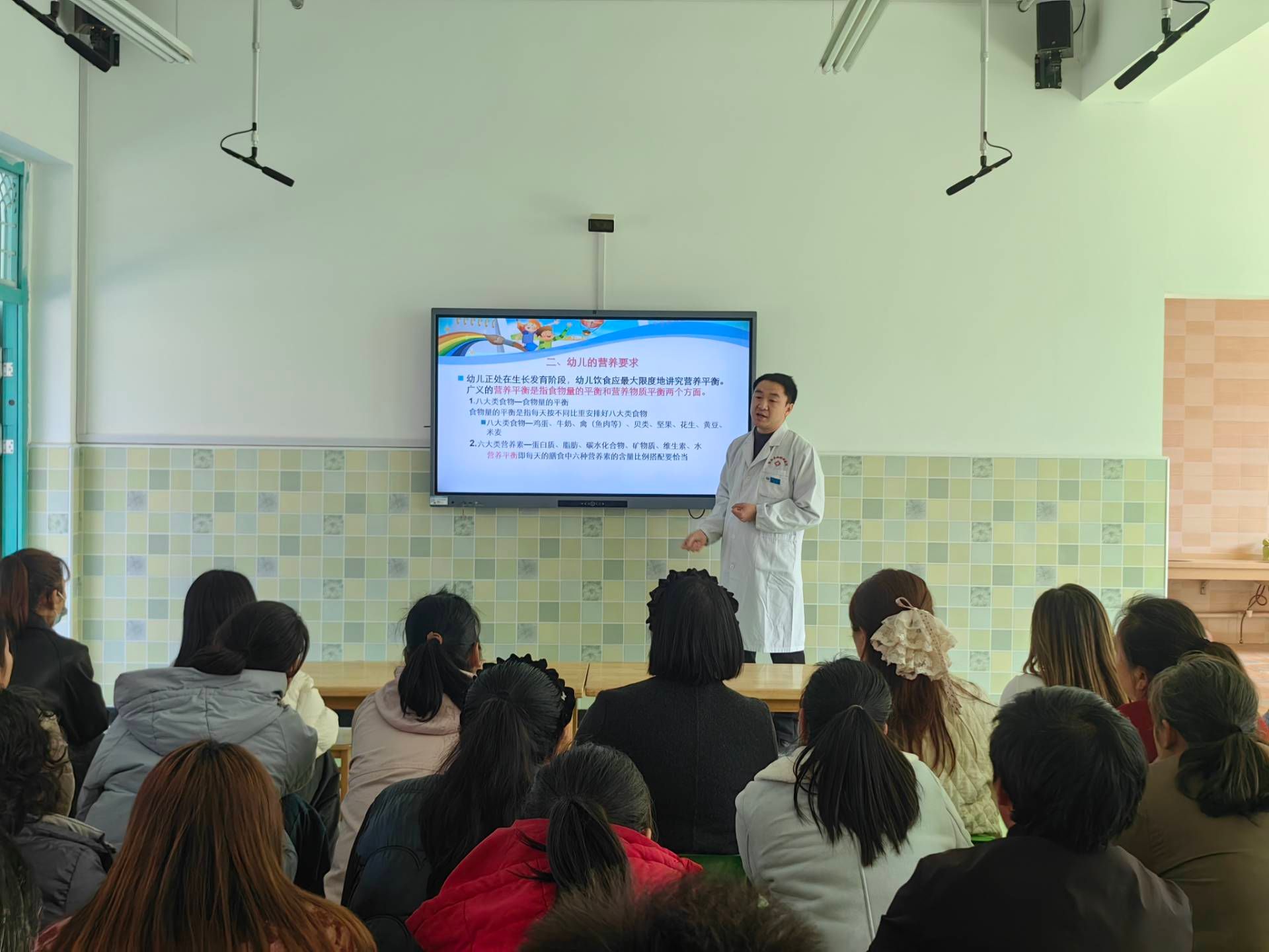 当天下午,郧西县妇幼保健院吴医生还为全园家长开展专题讲座,围绕春季传染病防控、幼儿健康饮食、科学育儿等内容进行科普宣讲,进一步筑牢家园健康防护网,公益讲座助力家长科学育儿。