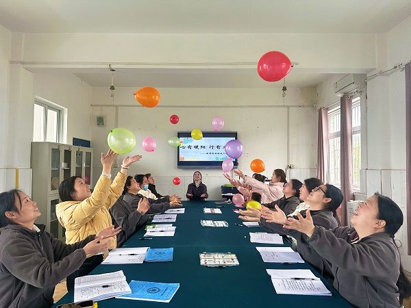 在“情绪气球”体验环节,教师们拿起画笔,将平日里潜藏心底的疲惫、焦虑、烦躁等无形负面情绪,逐一书写在彩色气球之上,让抽象的心理情绪变得具象可感;紧接着的“放飞心情”环节,大家通过互动仪式,将承载着负面情绪的气球释放,在轻松治愈的氛围中敞开心扉、真情流露,全身心投入体验,有效舒缓了工作压力,回归平静从容的内心状态。