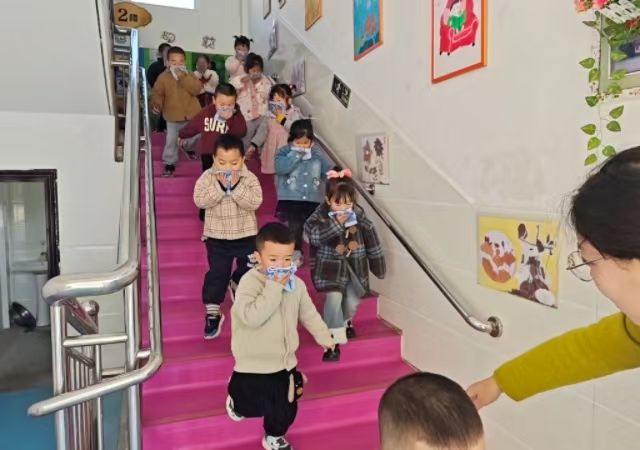随着火警警报声响起,演练正式启动。各班教师立即停止教学活动,快速分发湿毛巾,指导幼儿捂住口鼻、弯腰低头,按预定路线有序撤离。楼道负责人在关键点位引导,保障各班幼儿不推挤、不慌乱,安全有序向操场集结。整个过程紧张高效,全体师幼在教师的护送下,全部安全抵达指定区域。到达操场后,各班教师迅速清点人数,向总指挥汇报本班情况,确认无遗漏、无意外。随后,安全负责人对演练进行总结,重申消防安全要点,强化幼儿安全意识。