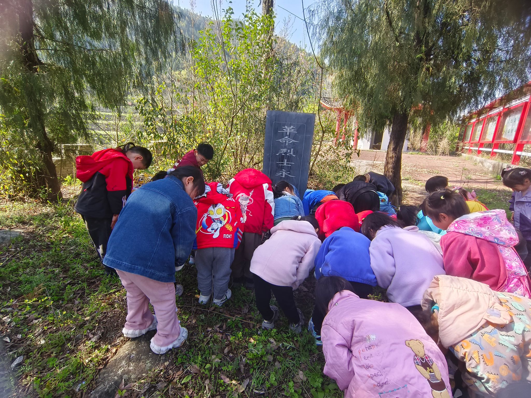 4月1日,十堰市郧阳区白桑关镇中心幼儿园组织全园师生,来到白桑关镇英雄纪念碑前,开展“清明祭扫 感恩前行”主题红色教育活动。